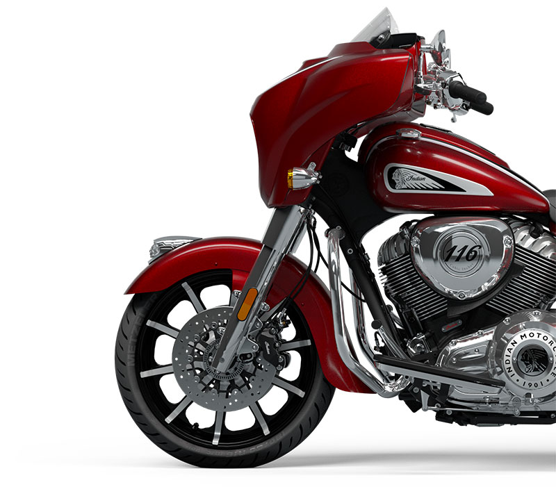 La Chieftain Limited est équipée de série du démarrage sans clé, d’un régulateur de vitesse, de l’ABS et d’un capteur de pression des pneumatiques.