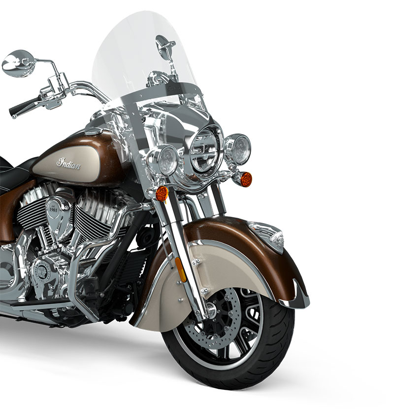 Le style américain classique agrémenté de la coiffe légendaire Indian Motorcycle ornant le garde-boue avant. Les détails et finitions chromés de qualité supérieure semblables à des bijoux, attirent l'attention.