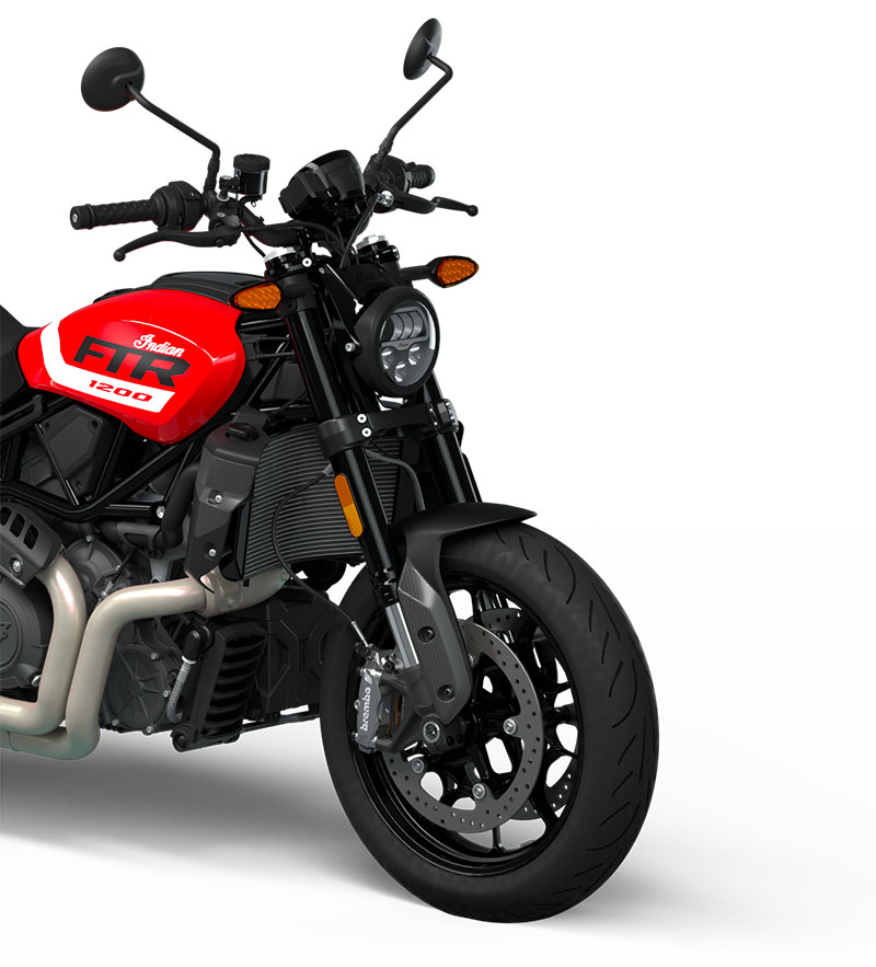 Directement inspirée de la FTR 750, notre incontournable moto de course de flat track au palmarès légendaire, la nouvelle FTR est entièrement optimisée pour offrir des performances ultimes sur route – là où les vrais pilotes s’illustrent. À l’avant comme à l’arrière, ses jantes légères de 17 pouces chaussées de pneus au grip exceptionnel, signés Metzeler Sportec, offrent une maniabilité hors du commun.
