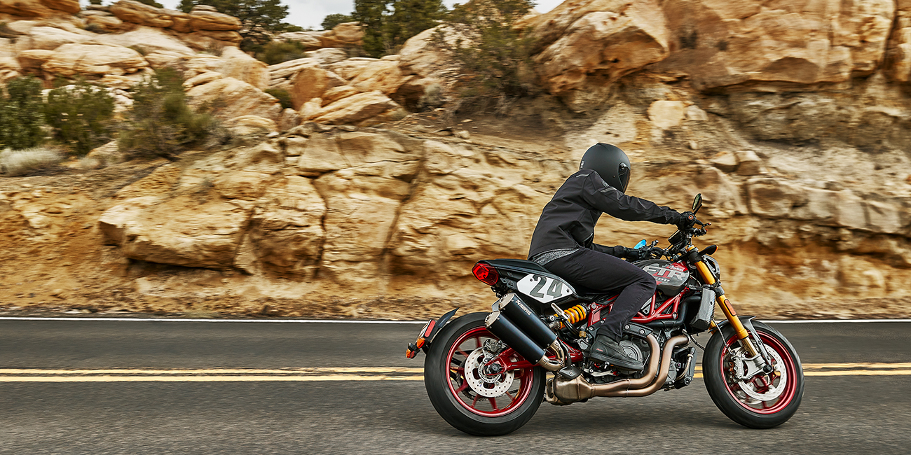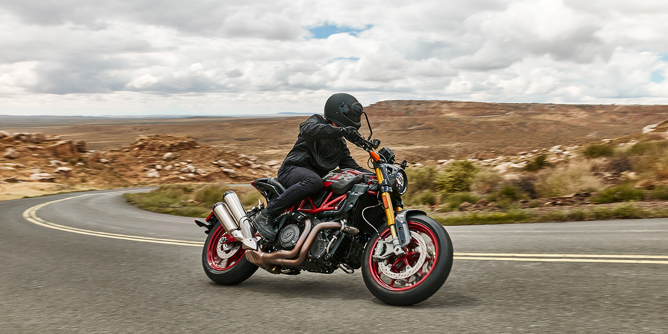 La FTR se démarque en arborant fièrement une fourche avant inversée de 43 mm entièrement réglable, ainsi qu’un amortisseur arrière unique et apparent. Les étriers monoblocs à 4 pistons et double disque de 320 mm, signés Brembo®, sont spécifiquement réglés pour un contrôle et une puissance de freinage époustouflants.