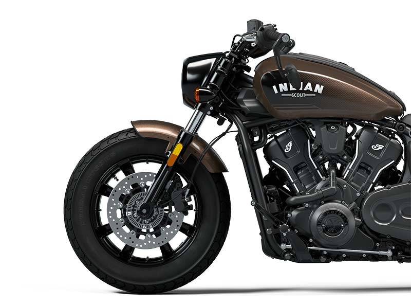 Les roues de 16 pouces et les pneus à flancs larges peaufinent le style emblématique de la Scout Bobber pour une conduite souple et un style distinctif.